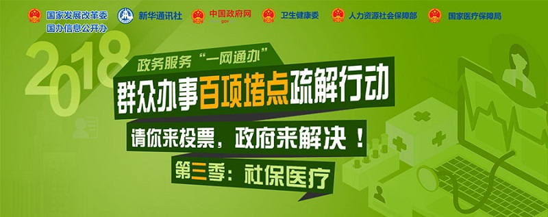 4月中旬起,“群众办事百项堵点疏解行动”已正式启动,分领域分批次面向社会公开征集100个办事堵点。第一批、 第二批堵点活动已先后征集到40项涉及教育、身份证明、商事服务领域的堵点问题。截至目前,31个省(区、市)累计解决 堵点问题542个, 问题解决情况已同步上线展示。 第三季来了! 7月6日起,国家发展改革委、国办信息公开办、新华社、中国政府网、卫生健康委、人力资源社会保障部、医疗保障局 等7部门和单位联合发起第三季堵点问题征集活动,聚焦社保医疗领域办事堵点问题。请结合自身所遇到的涉及看病就医、 养老金认证、报销生育相关费用等经历参与投票。所征集的信息经大数据分析后,我们将选择群众反映最强烈的20个“堵 点”问题,推动有关地方、部门限时解决。 办事“堵点”问题调查问卷(第三季)