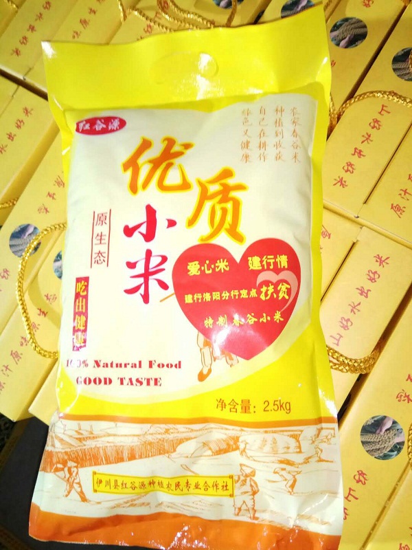 2016年红谷源春谷小米旗舰店在淘宝网已经运行销售,在洛阳市建行的支持下,已经成功入驻善融商城,2017年底也加入了京东扶贫馆。和买乐买、洛阳日报社的购时惠、洛阳市供销社、中创电商等已经取得合作推广,伊川县又为我村建立了益农社专业站,我们合作社把有效的资源整合起来,齐头并进。