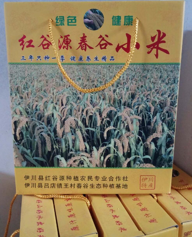 伊川县红谷源种植农民专业合作社是利用当地优势种植资源,把社员联合起来,在上级各部门的指导和支持下,以种植、加工春谷子、红薯为主,2016年,注册商标“红谷源”,2017年确定2000亩土地按照生态化、标准化、规模化、种植,无公害认证已经申请。