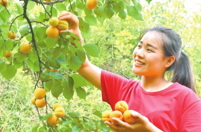 5月26日,第二届洛阳五龙沟贡杏采摘节开幕,游客在洛阳市高新区孙旗屯乡前五龙沟村千亩杏园中采摘凯特杏。近年来,孙旗屯乡大力发展沟域经济和休闲旅游产业,通过举办杏花节和采摘节,吸引大批游客到来。