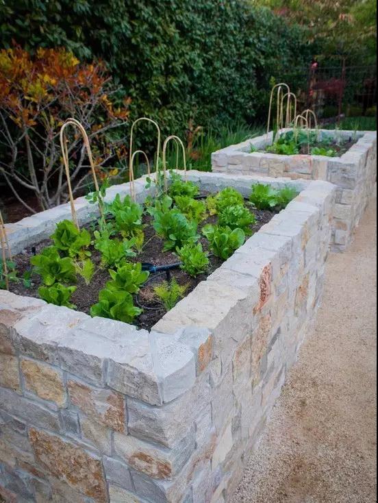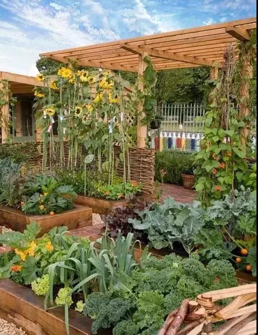 现在越来越多的人,喜欢在家里留下一小块空地,里面种下一些漂亮的植物,这样不仅仅环保,既装饰了花园,又有了实用的东西;其中,最开心的事情,应该莫过于自己亲手种植的蔬菜到了收获得那一刻~接下来就跟小编一起来看看,你家的菜园可以做成什么样吧!你可以用粗狂的石材垒砌一个小菜池,简单的支几个藤蔓架,种一些喜欢吃的蔬菜,又是独树一帜的小景观。 这种大棚盒也可以选择, 下雨或很冷的时候, 可以把盖子盖起来。 还有菜园爱好者, 把花园全都改成了菜园, 分区块种不同的蔬菜, 到了收获的季节, 看着累累果实, 成就感就是这么来的。 这种大盒子菜园还是挺常见的, 实用性强。