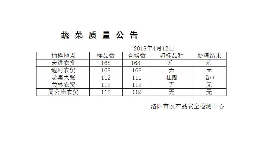 蔬菜质量公告2018.4.12